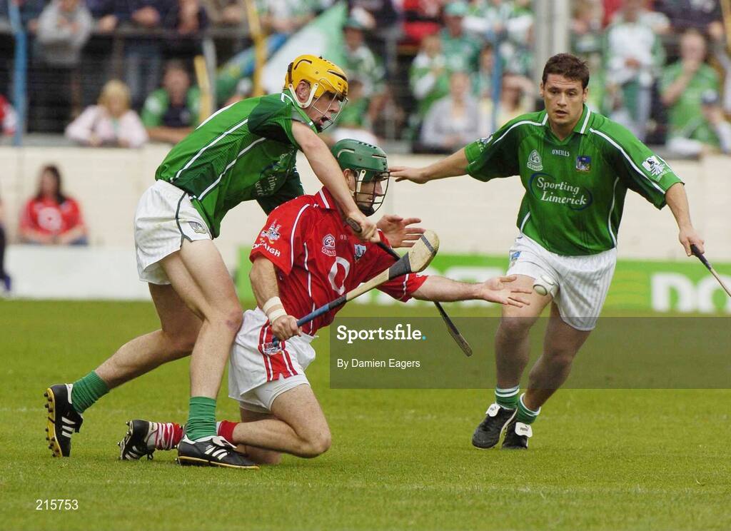 22 July 2006; Jerry O'Connor, Cork, in action against Niall Moran, left, and Barry Foley, Limerick. Guinness All-Ireland Senior Hurling Championship Quarter-Final, Cork v Limerick, Semple Stadium, Thurles, Co. Tipperary. Picture credit: Damien Eagers / SPORTSFILE