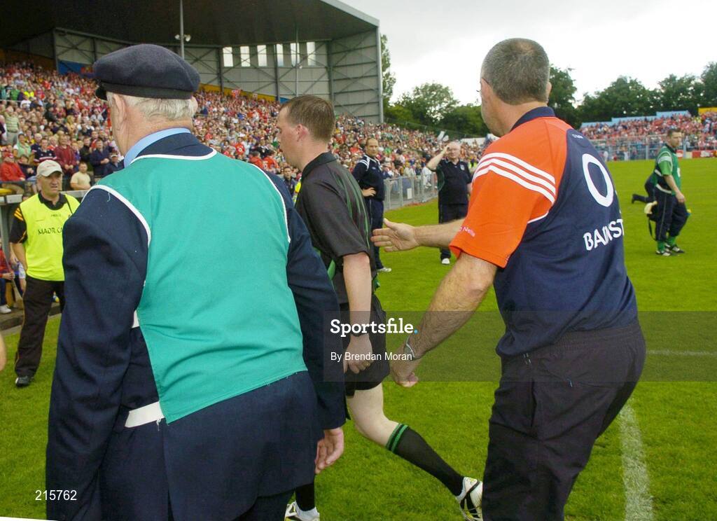 22 July 2006; Cork manager John Allen, right, attempts to speak to referee Eamon Morris after the final whistle. Guinness All-Ireland Senior Hurling Championship Quarter-Final, Cork v Limerick, Semple Stadium, Thurles, Co. Tipperary. Picture credit: Brendan Moran / SPORTSFILE