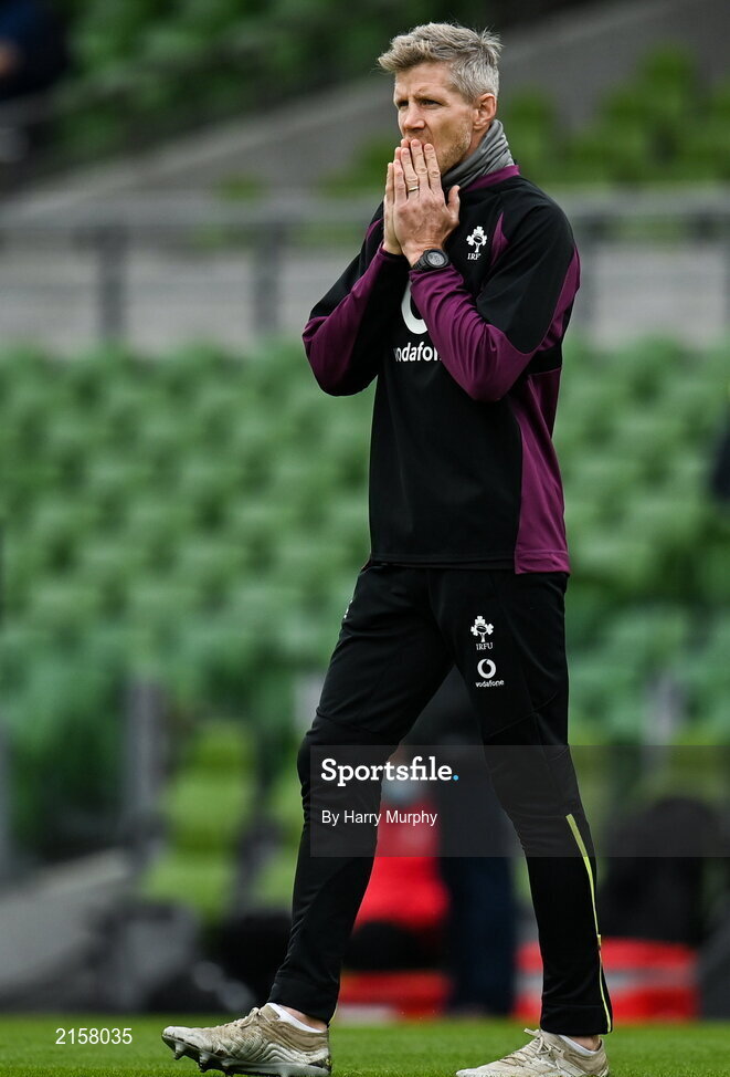 5 February 2022; Ireland defence coach Simon Easterby before the Guinness Six Nations Rugby Championship match between Ireland and Wales at the Aviva Stadium in Dublin. Photo by Harry Murphy/Sportsfile