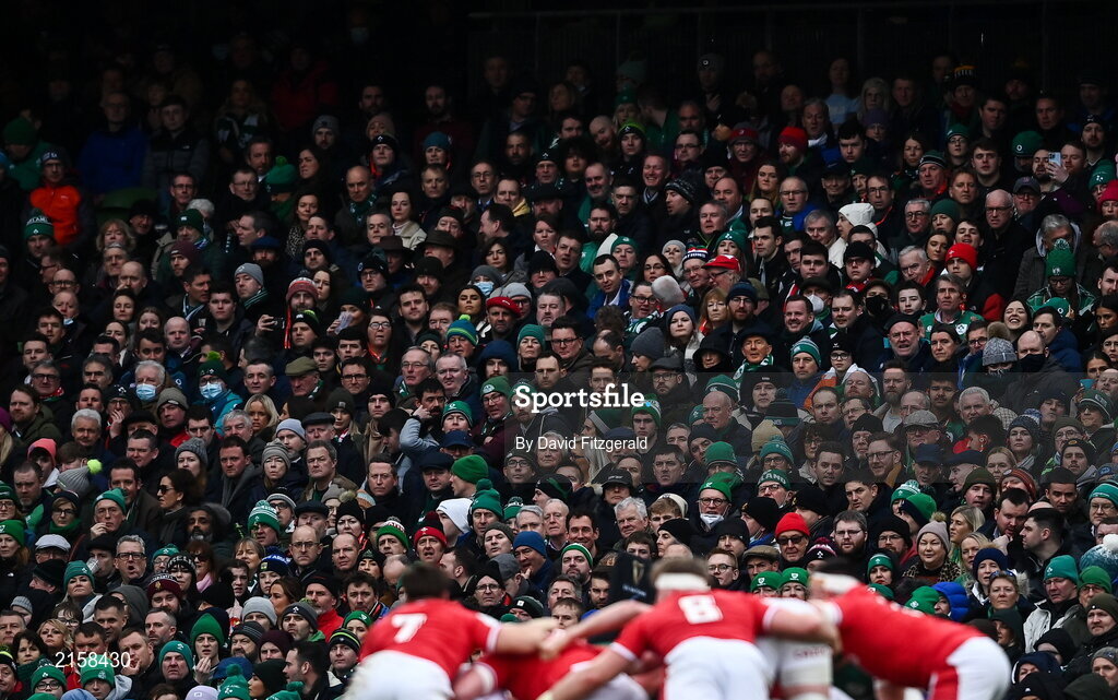 5 February 2022; Supporters look on during the Guinness Six Nations Rugby Championship match between Ireland and Wales at the Aviva Stadium in Dublin. Photo by David Fitzgerald/Sportsfile