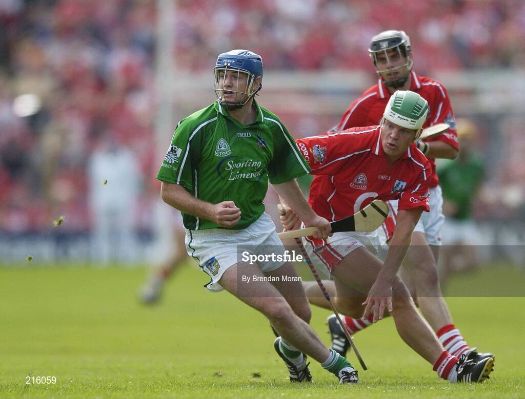 22 July 2006; Brian Geary, Limerick, in action against Niall McCarthy, Cork. Guinness All-Ireland Senior Hurling Championship Quarter-Final, Cork v Limerick, Semple Stadium, Thurles, Co. Tipperary. Picture credit: Brendan Moran / SPORTSFILE