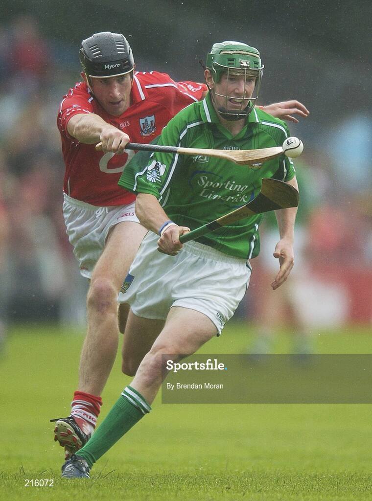 22 July 2006; Seamus Hickey, Limerick, in action against John Gardiner, Cork. Guinness All-Ireland Senior Hurling Championship Quarter-Final, Cork v Limerick, Semple Stadium, Thurles, Co. Tipperary. Picture credit: Brendan Moran / SPORTSFILE