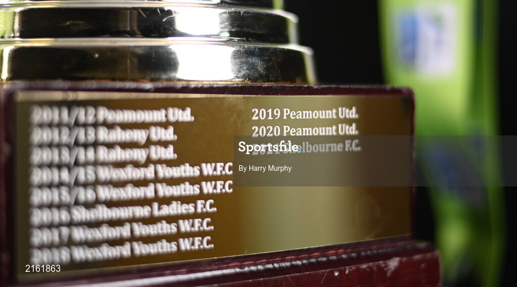 9 February 2022; A detailed view of the SSE Airtricity Women's National League trophy at the launch of the SSE Airtricity Premier & First Division and Women's National League 2022 season held at HBV Studios in Clarehall, Dublin. Photo by Harry Murphy/Sportsfile