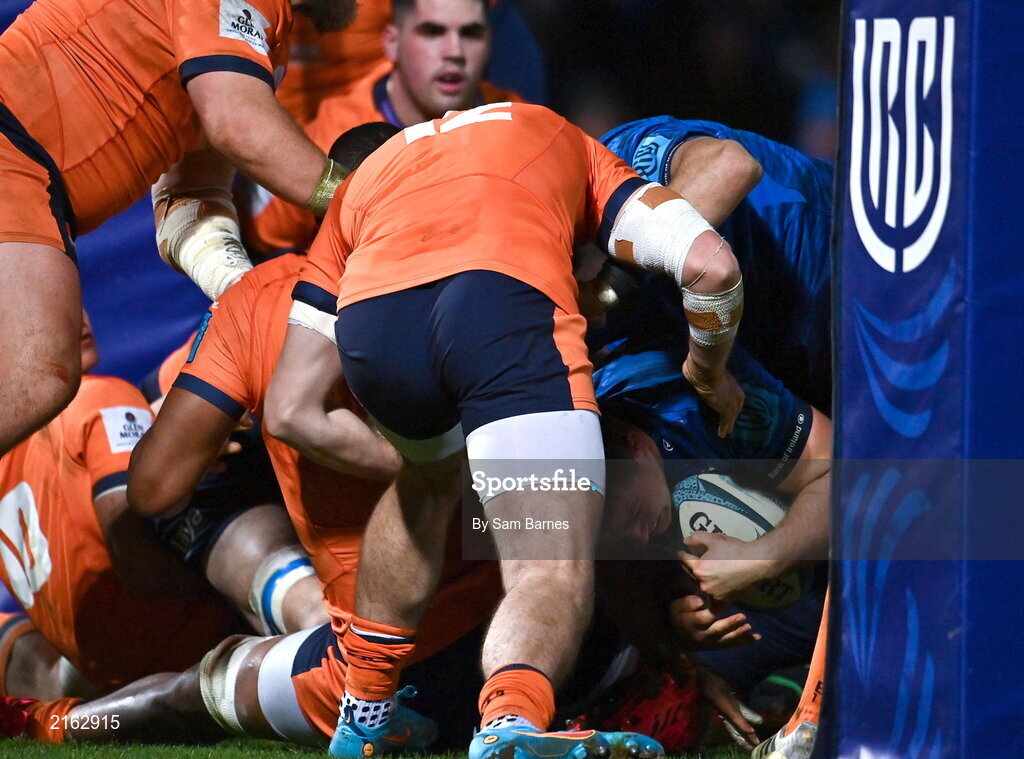 11 February 2022; Josh Murphy of Leinster scores his side's first try during the United Rugby Championship match between Leinster and Edinburgh at the RDS Arena in Dublin. Photo by Sam Barnes/Sportsfile