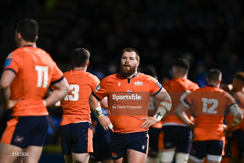 11 February 2022; Boan Venter of Edinburgh after his side conceded a second try during the United Rugby Championship match between Leinster and Edinburgh at the RDS Arena in Dublin. Photo by David Fitzgerald/Sportsfile