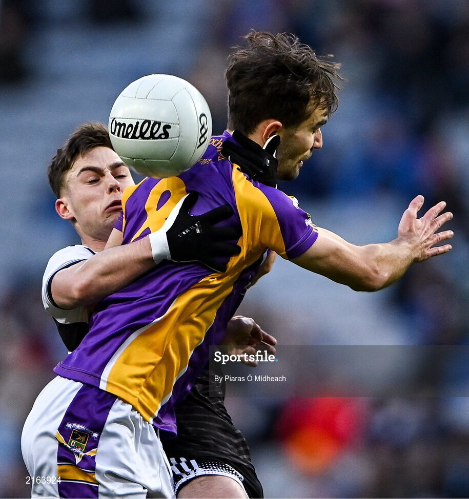 12 February 2022; Ceilum Docherty of Kilcoo in action against Ben Shovlin of Kilmacud Crokes during the AIB GAA Football All-Ireland Senior Club Championship Final match between Kilcoo, Down, and Kilmacud Crokes, Dublin, at Croke Park in Dublin. Photo by Piaras Ó Mídheach/Sportsfile
