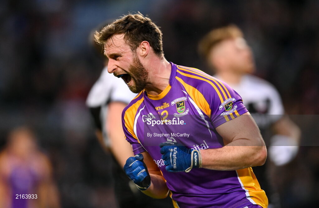 12 February 2022; Shane Horan of Kilmacud Crokes celebrates a score during the AIB GAA Football All-Ireland Senior Club Championship Final match between Kilcoo, Down, and Kilmacud Crokes, Dublin, at Croke Park in Dublin. Photo by Stephen McCarthy/Sportsfile