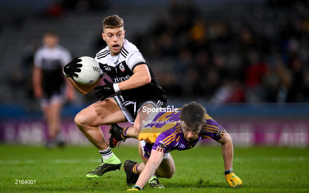 12 February 2022; Jerome Johnston of Kilcoo in action against Hugh Kenny of Kilmacud Crokes during the AIB GAA Football All-Ireland Senior Club Championship Final match between Kilcoo, Down, and Kilmacud Crokes, Dublin, at Croke Park in Dublin. Photo by Stephen McCarthy/Sportsfile