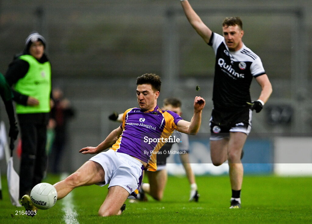 12 February 2022; Andrew McGowan of Kilmacud Crokes can't keep the ball from going over the sideline during the AIB GAA Football All-Ireland Senior Club Championship Final match between Kilcoo, Down, and Kilmacud Crokes, Dublin, at Croke Park in Dublin. Photo by Piaras Ó Mídheach/Sportsfile