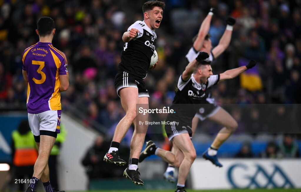 12 February 2022; Anthony Morgan of Kilcoo celebrates at the final whistle of the AIB GAA Football All-Ireland Senior Club Championship Final match between Kilcoo, Down, and Kilmacud Crokes, Dublin, at Croke Park in Dublin. Photo by Stephen McCarthy/Sportsfile