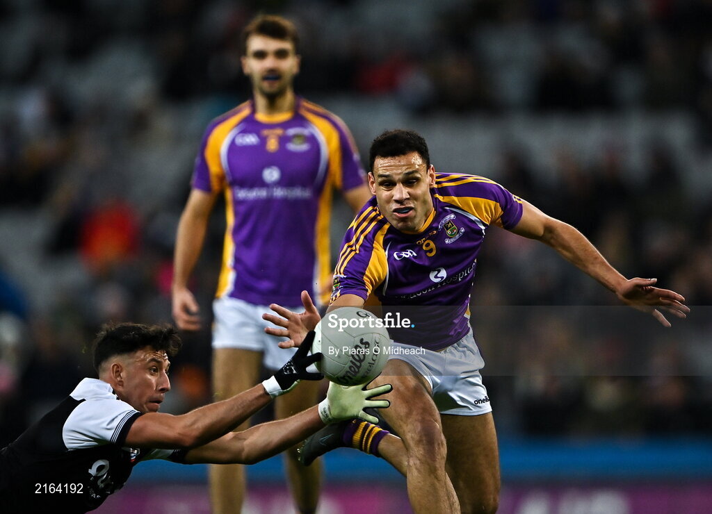 12 February 2022; Craig Dias of Kilmacud Crokes in action against Dylan Ward of Kilcoo during the AIB GAA Football All-Ireland Senior Club Championship Final match between Kilcoo, Down, and Kilmacud Crokes, Dublin, at Croke Park in Dublin. Photo by Piaras Ó Mídheach/Sportsfile