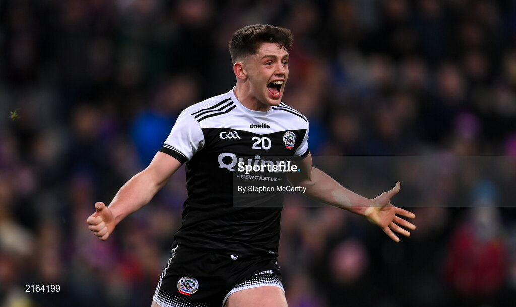 12 February 2022; Anthony Morgan of Kilcoo celebrates at the final whistle of the AIB GAA Football All-Ireland Senior Club Championship Final match between Kilcoo, Down, and Kilmacud Crokes, Dublin, at Croke Park in Dublin. Photo by Stephen McCarthy/Sportsfile