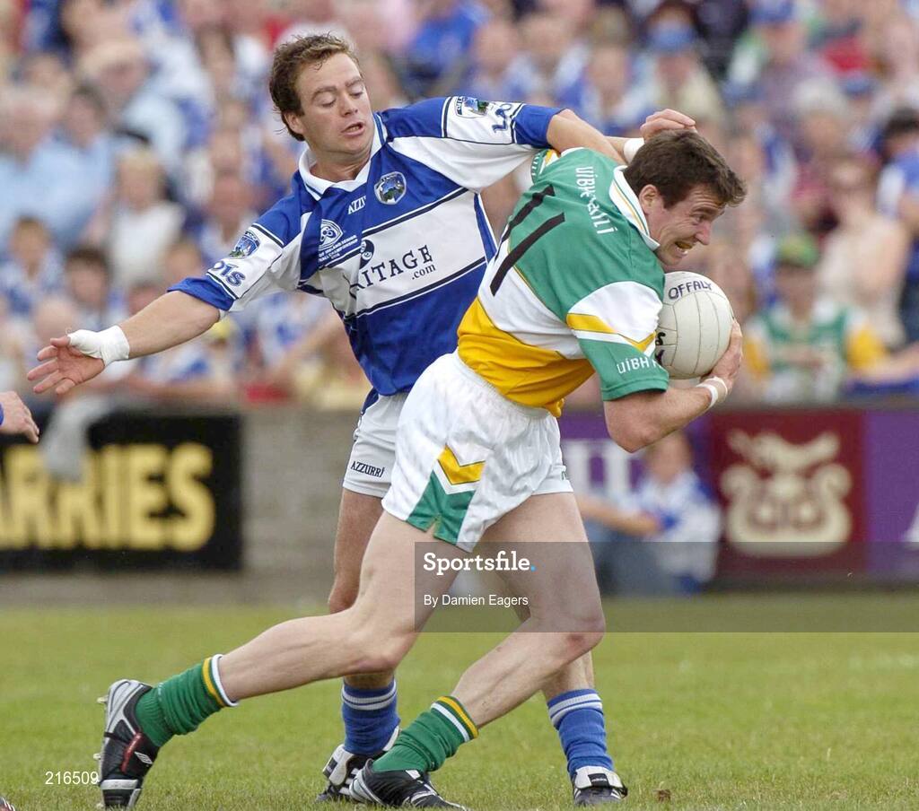 30 July 2006; Ciaran McManus, Offaly, in action against Chris Conway, Laois. Bank of Ireland All-Ireland Senior Football Championship Qualifier, Round 4, Laois v Offaly, O'Moore Park, Portlaoise, Co. Laois. Picture credit; Damien Eagers / SPORTSFILE