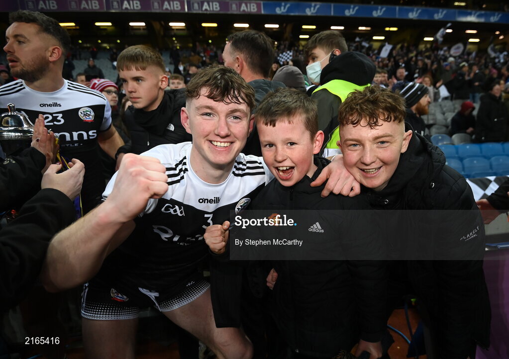 12 February 2022; Kilcoo's Ryan McEvoy celebrates after the AIB GAA Football All-Ireland Senior Club Championship Final match between Kilcoo, Down, and Kilmacud Crokes, Dublin, at Croke Park in Dublin. Photo by Stephen McCarthy/Sportsfile