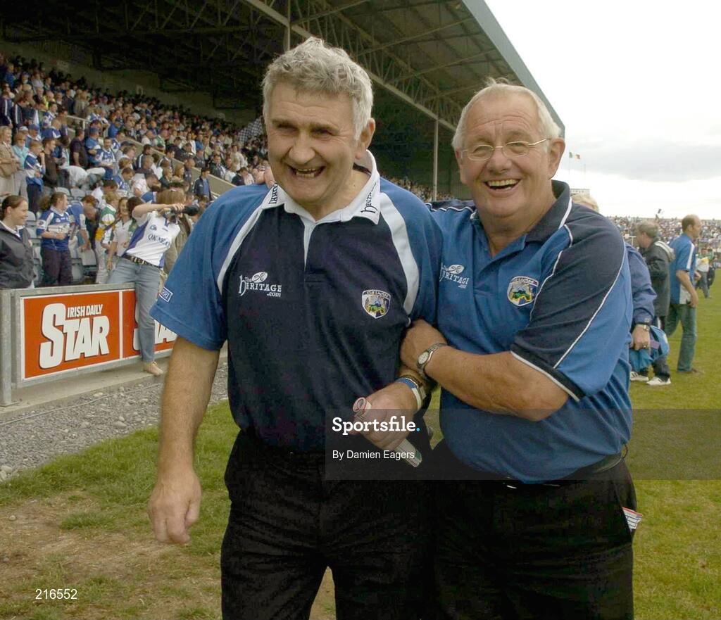 30 July 2006; Mick O'Dwyer, Laois manager, with Laois football baord chairman Joe O'Dwyer, right, at the end of the match. Bank of Ireland All-Ireland Senior Football Championship Qualifier, Round 4, Laois v Offaly, O'Moore Park, Portlaoise, Co. Laois. Picture credit; Damien Eagers / SPORTSFILE