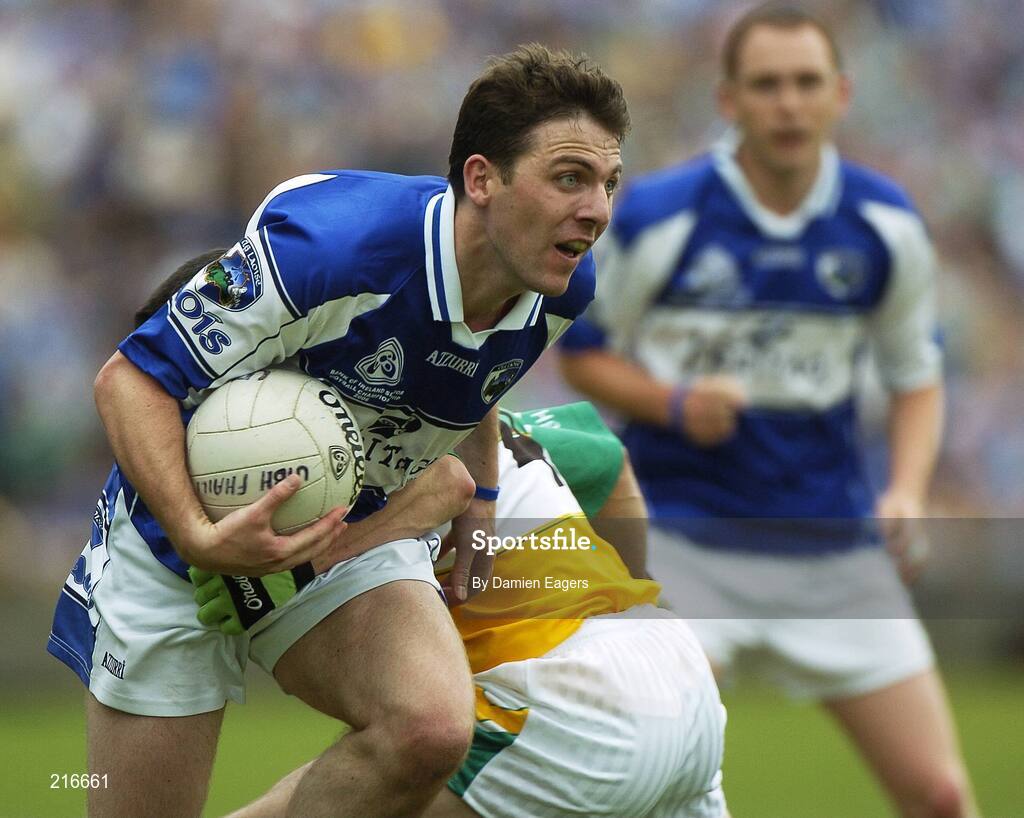 30 July 2006; Ian Fitzgerald, Laois, in action against Nigel Grennan, Offaly. Bank of Ireland All-Ireland Senior Football Championship Qualifier, Round 4, Laois v Offaly, O'Moore Park, Portlaoise, Co. Laois. Picture credit; Damien Eagers / SPORTSFILE