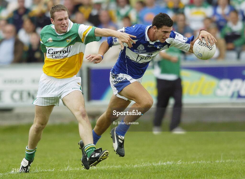 30 July 2006; Brendan Quigley, Laois, in action against Shane Sullivan, Offaly. Bank of Ireland All-Ireland Senior Football Championship Qualifier, Round 4, Laois v Offaly, O'Moore Park, Portlaoise, Co. Laois. Picture credit; Brian Lawless / SPORTSFILE