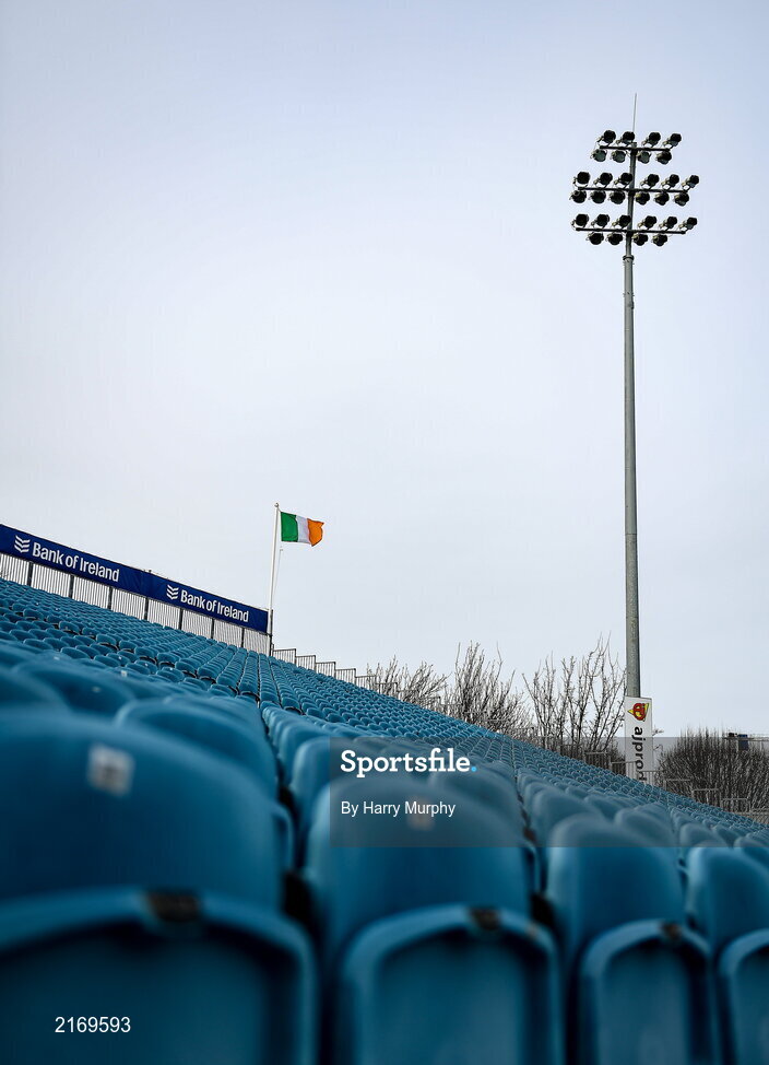 19 February 2022; The Irish Tricolour flies in the wind before the United Rugby Championship match between Leinster and Ospreys at RDS Arena in Dublin. Photo by Harry Murphy/Sportsfile