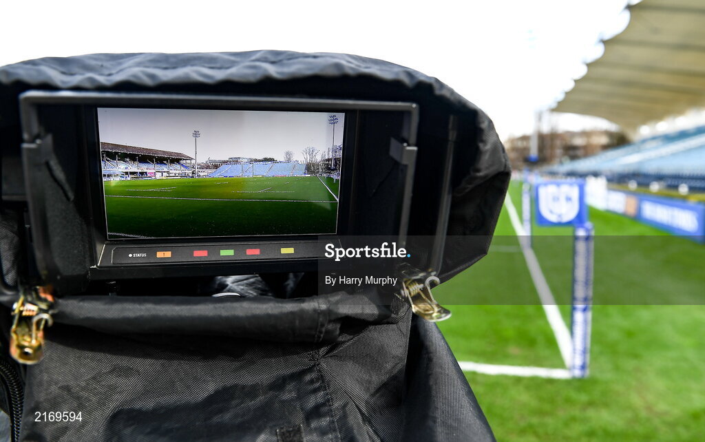 19 February 2022; A general view of the RDS Arena through a TV camera before the United Rugby Championship match between Leinster and Ospreys at RDS Arena in Dublin. Photo by Harry Murphy/Sportsfile