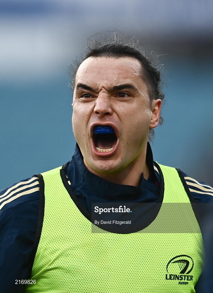 19 February 2022; James Lowe of Leinster before the United Rugby Championship match between Leinster and Ospreys at RDS Arena in Dublin. Photo by David Fitzgerald/Sportsfile