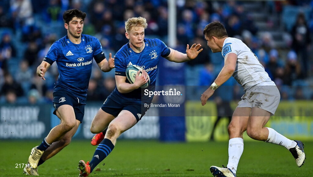 19 February 2022; Jamie Osborne of Leinster in action against Michael Collins of Ospreys during the United Rugby Championship match between Leinster and Ospreys at RDS Arena in Dublin. Photo by Brendan Moran/Sportsfile