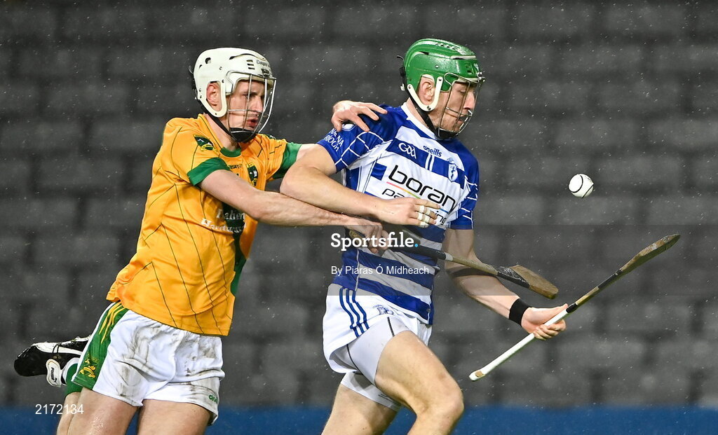 5 February 2022; Jack Sheridan of Naas in action against Flor McCarthy of Kilmoyley during the AIB GAA Hurling All-Ireland Intermediate Club Championship Final match between Kilmoyley, Kerry, and Naas, Kildare, at Croke Park in Dublin. Photo by Piaras Ó Mídheach/Sportsfile