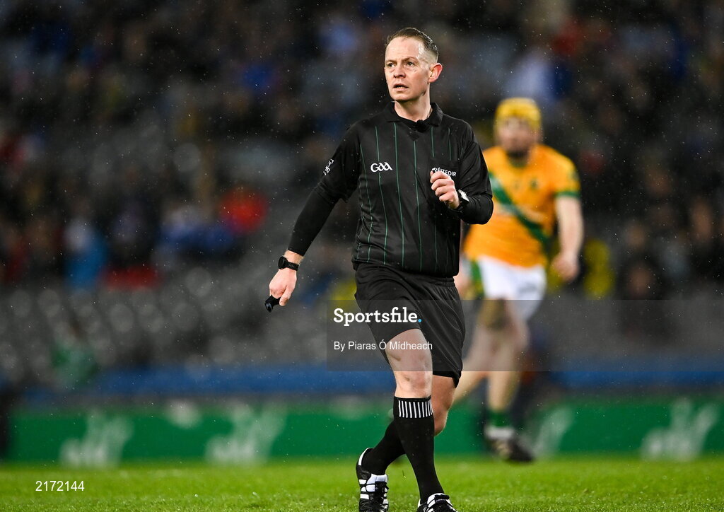 5 February 2022; Referee Chris Mooney during the AIB GAA Hurling All-Ireland Intermediate Club Championship Final match between Kilmoyley, Kerry, and Naas, Kildare, at Croke Park in Dublin. Photo by Piaras Ó Mídheach/Sportsfile