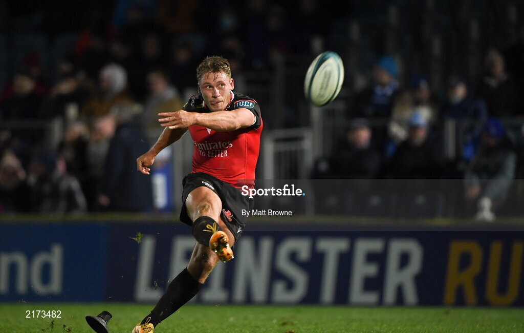 25 February 2022; Tiaan Swanepoel of Emirates Lions kicks a convertion during the United Rugby Championship match between Leinster and Emirates Lions at RDS Arena in Dublin. Photo by Matt Browne/Sportsfile