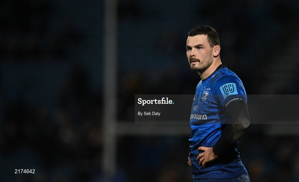 25 February 2022; Max Deegan of Leinster during the United Rugby Championship match between Leinster and Emirates Lions at the RDS Arena in Dublin. Photo by Seb Daly/Sportsfile