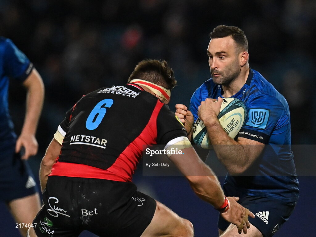 25 February 2022; Dave Kearney of Leinster in action against Jaco Kriel of Emirates Lions during the United Rugby Championship match between Leinster and Emirates Lions at the RDS Arena in Dublin. Photo by Seb Daly/Sportsfile