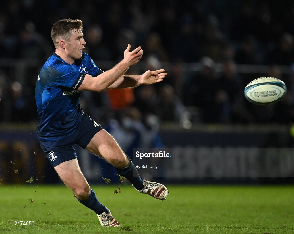 25 February 2022; Luke McGrath of Leinster during the United Rugby Championship match between Leinster and Emirates Lions at the RDS Arena in Dublin. Photo by Seb Daly/Sportsfile