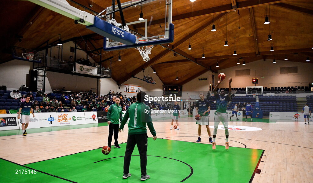 27 February 2022; The Ireland team warm up before the FIBA EuroBasket 2025 Pre-Qualifiers First Round Group A match between Ireland and Cyprus at the National Basketball Arena in Tallaght, Dublin. Photo by Brendan Moran/Sportsfile