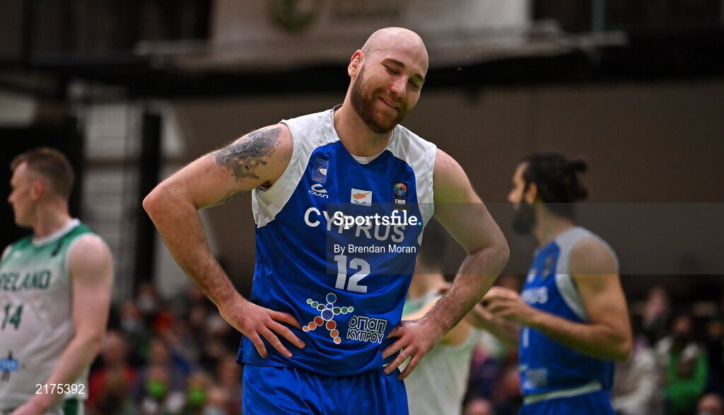 27 February 2022; Roberto Mantovani of Cyprus reacts during the FIBA EuroBasket 2025 Pre-Qualifiers First Round Group A match between Ireland and Cyprus at the National Basketball Arena in Tallaght, Dublin. Photo by Brendan Moran/Sportsfile