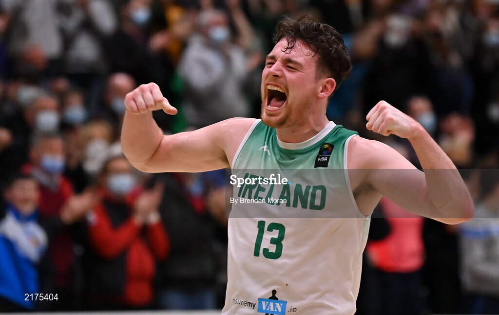 27 February 2022; Jordan Blount of Ireland celebrates after the FIBA EuroBasket 2025 Pre-Qualifiers First Round Group A match between Ireland and Cyprus at the National Basketball Arena in Tallaght, Dublin. Photo by Brendan Moran/Sportsfile