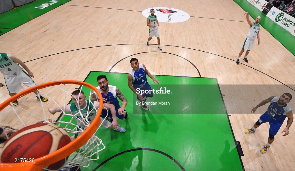 27 February 2022; Keelan Cairns of Ireland scores a three pointer during the FIBA EuroBasket 2025 Pre-Qualifiers First Round Group A match between Ireland and Cyprus at the National Basketball Arena in Tallaght, Dublin. Photo by Brendan Moran/Sportsfile