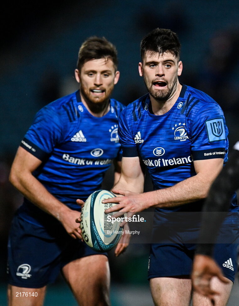 25 February 2022; Harry Byrne and Ross Byrne of Leinster during the United Rugby Championship match between Leinster and Emirates Lions at RDS Arena in Dublin. Photo by Harry Murphy/Sportsfile