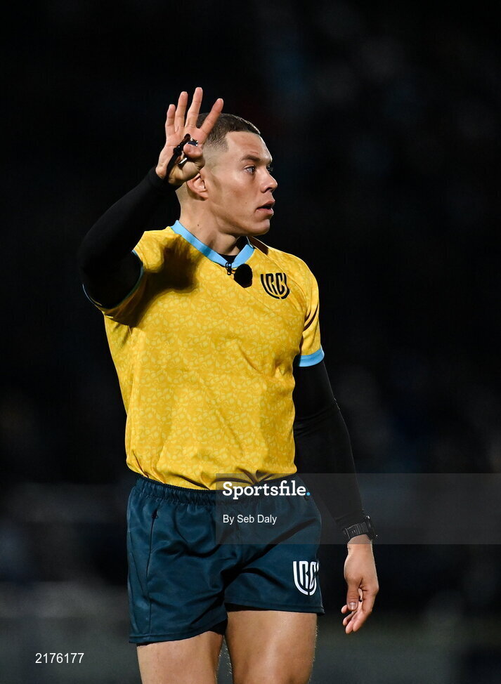 25 February 2022; Referee Craig Evans during the United Rugby Championship match between Leinster and Emirates Lions at the RDS Arena in Dublin. Photo by Seb Daly/Sportsfile