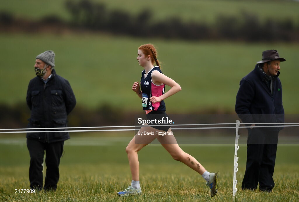 3 March 2022; Michele Healy of Colaiste Muire Ennis, competing in the intermediate girls 3000m during the Irish Life Health Munster Schools Cross Country Championships at Riverstick, Boulaling, Cork. Photo by David Fitzgerald/Sportsfile