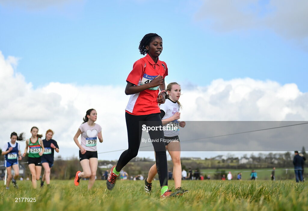 3 March 2022; Fiona Tamen of St Angela's Ursuline Waterford, competing in the minor girls 2000m during the Irish Life Health Munster Schools Cross Country Championships at Riverstick, Boulaling, Cork. Photo by David Fitzgerald/Sportsfile