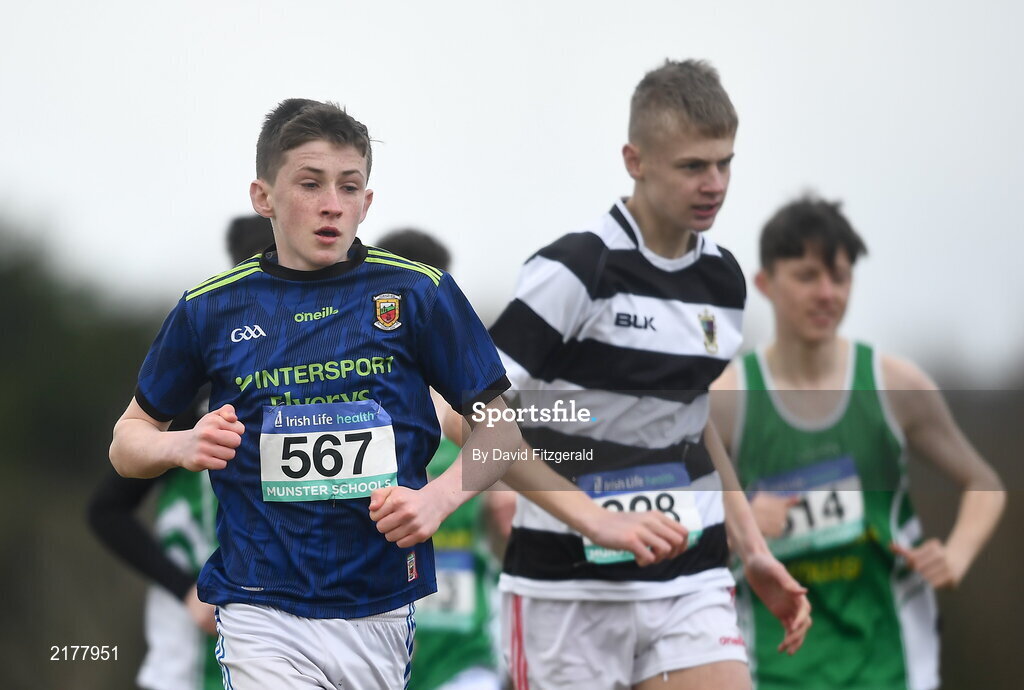 3 March 2022; Joe Mannion of St Flannans Ennis competing in the intermediate boys 5000m during the Irish Life Health Munster Schools Cross Country Championships at Riverstick, Boulaling, Cork. Photo by David Fitzgerald/Sportsfile