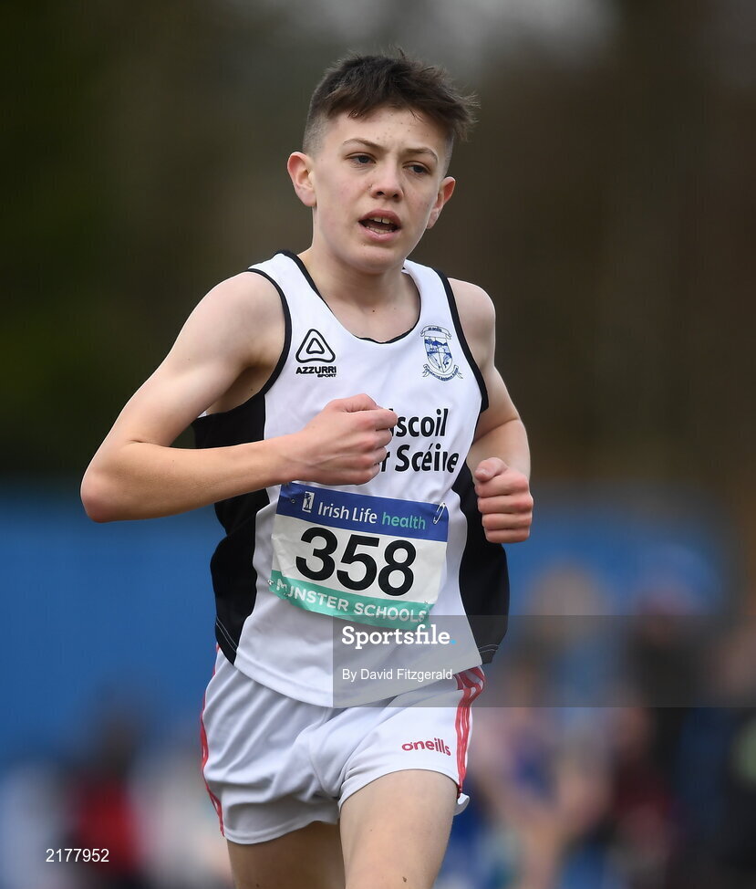 3 March 2022; Seamus O'Donoghue of Pobalscoil Inbhear Scéine Kenmare on his way to winning the junior boys 3500m during the Irish Life Health Munster Schools Cross Country Championships at Riverstick, Boulaling, Cork. Photo by David Fitzgerald/Sportsfile
