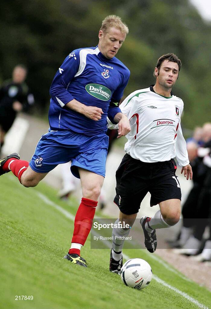 12 August 2006; Gary Hamilton, Glentoran, in action against Daragh Peden, Loughgall. CIS Insurance Cup, Loughgall v Glentoran, Lakeview Park, Loughgall, Co. Armagh. Picture credit: Russell Pritchard / SPORTSFILE