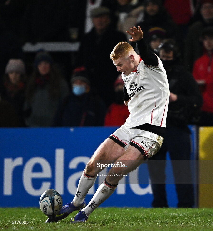 4 March 2022; Nathan Doak of Ulster takes a conversion during the United Rugby Championship match between Ulster and Cardiff at Kingspan Stadium in Belfast. Photo by Piaras Ó Mídheach/Sportsfile