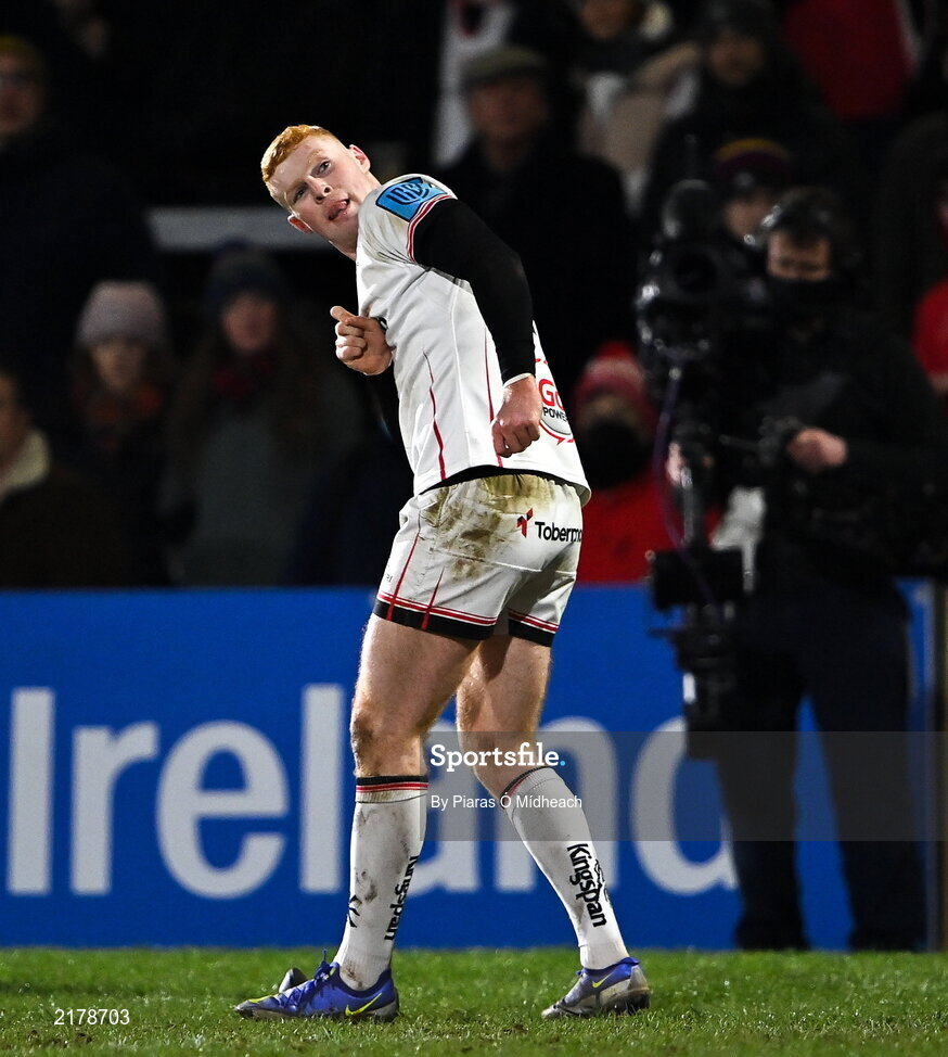 4 March 2022; Nathan Doak of Ulster watches as his conversion hits the post during the United Rugby Championship match between Ulster and Cardiff at Kingspan Stadium in Belfast. Photo by Piaras Ó Mídheach/Sportsfile