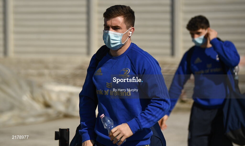 5 March 2022; Luke McGrath of Leinster arrives before the United Rugby Championship match between Benetton and Leinster at Stadio di Monigo in Treviso, Italy. Photo by Harry Murphy/Sportsfile
