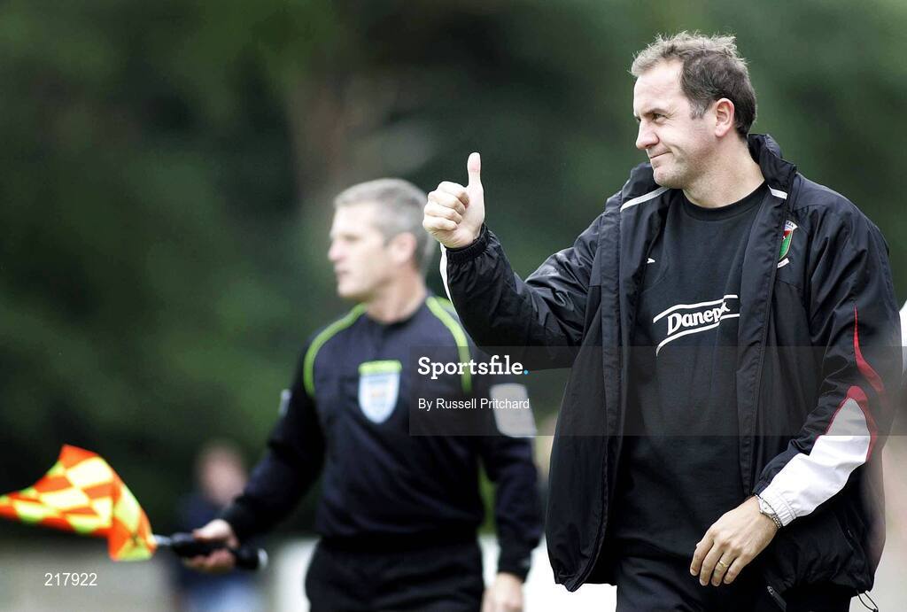 12 August 2006; Glentoran manager Paul Millar gives the thumbs up to his team as the final whistle blows against Loughgall. CIS Insurance Cup, Loughgall v Glentoran, Lakeview Park, Loughgall, Co. Armagh. Picture credit: Russell Pritchard / SPORTSFILE