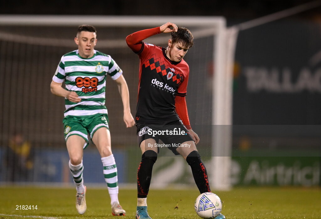 11 March 2022; Stephen Mallon of Bohemians in action against Gary O'Neill of Shamrock Rovers during the SSE Airtricity League Premier Division match between Shamrock Rovers and Bohemians at Tallaght Stadium in Dublin. Photo by Stephen McCarthy/Sportsfile