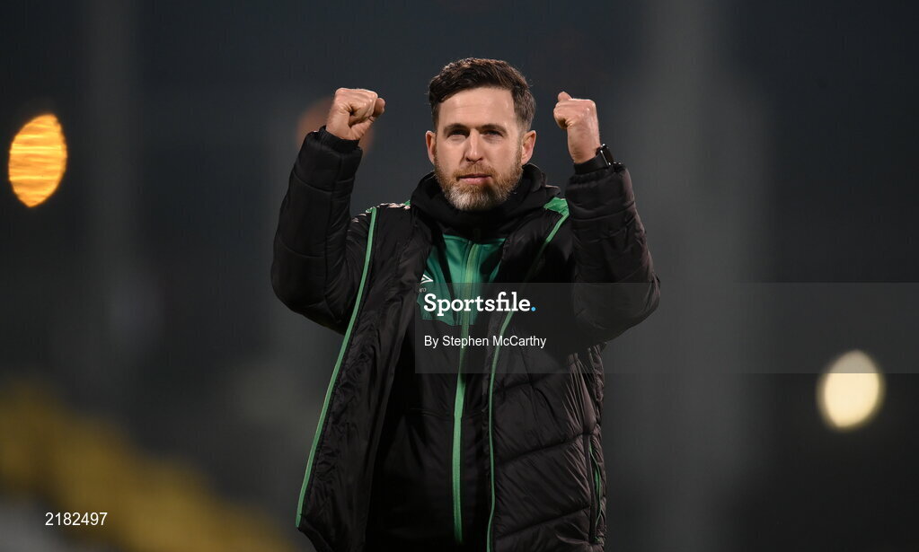 11 March 2022; Shamrock Rovers manager Stephen Bradley celebrates after the SSE Airtricity League Premier Division match between Shamrock Rovers and Bohemians at Tallaght Stadium in Dublin. Photo by Stephen McCarthy/Sportsfile