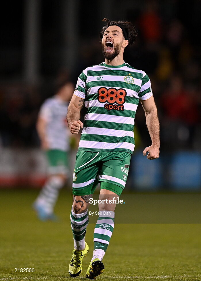 11 March 2022; Richie Towell of Shamrock Rovers celebrates at the final whistle after his side's victory in the SSE Airtricity League Premier Division match between Shamrock Rovers and Bohemians at Tallaght Stadium in Dublin. Photo by Seb Daly/Sportsfile