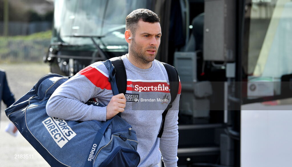 13 March 2022; Cork goalkeeper Micheal Martin arrives before the Allianz Football League Division 2 match between Meath and Cork at Páirc Táilteann in Navan, Meath. Photo by Brendan Moran/Sportsfile